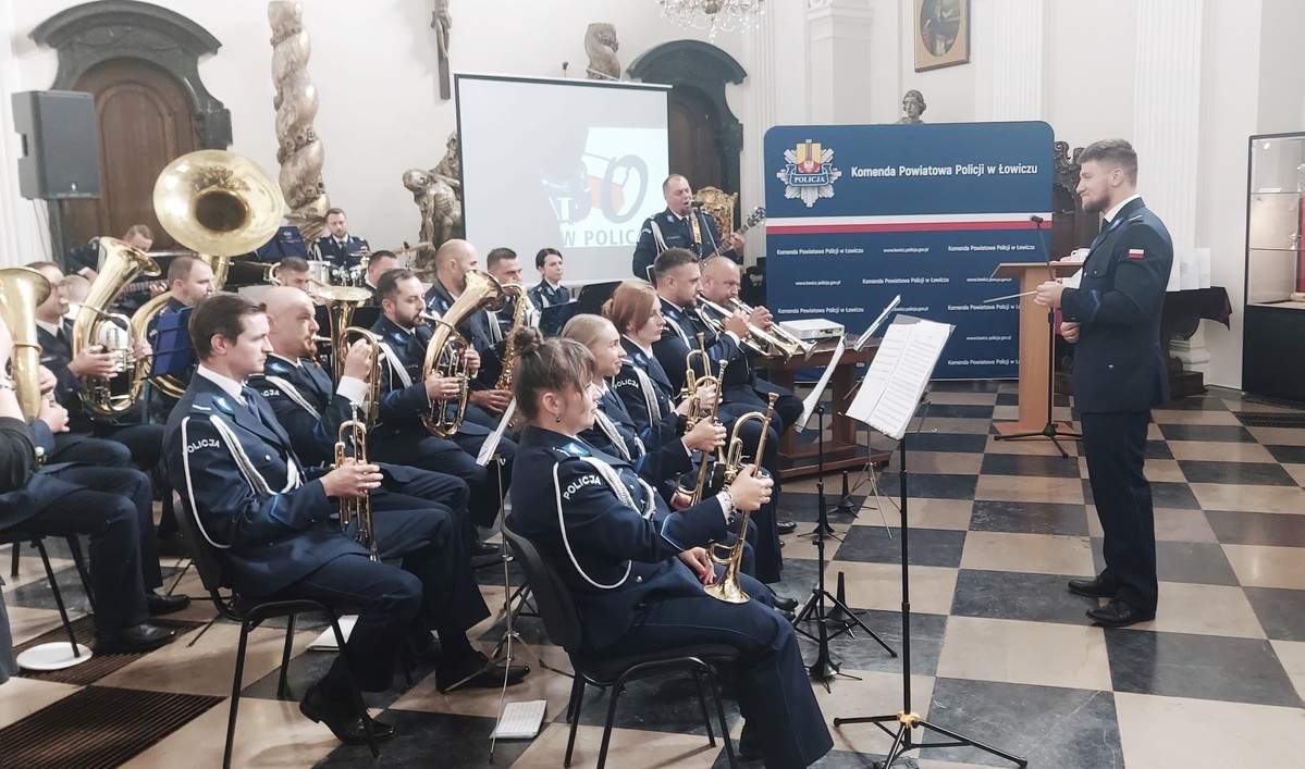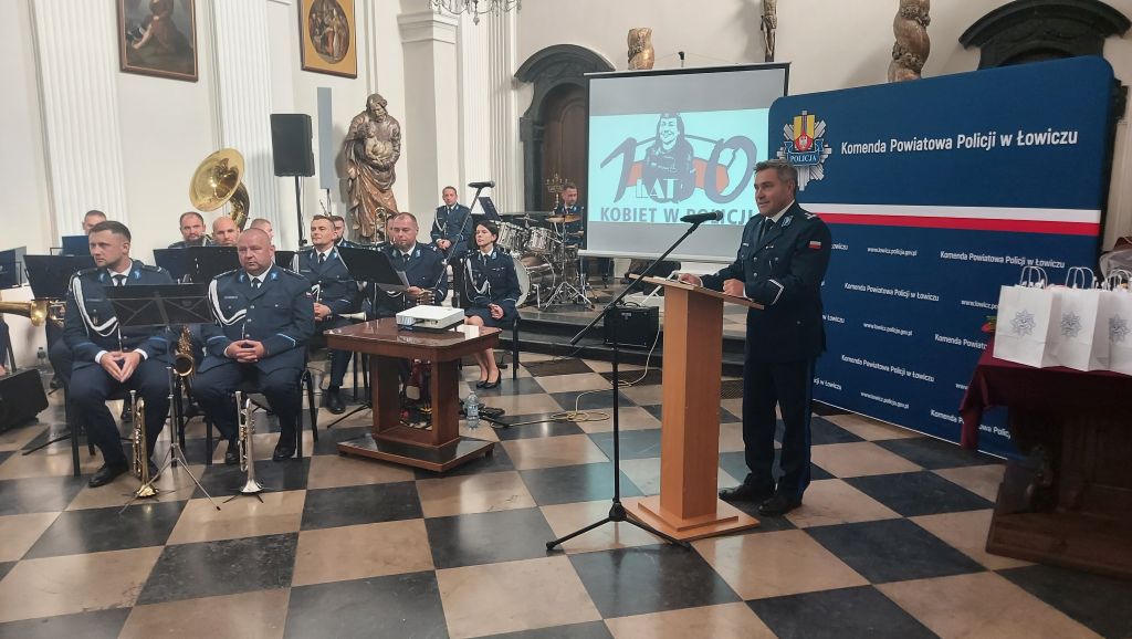 Następnie głos zabrał Jarosław Olbrychowski – Prezes Stowarzyszenia Rodzina Policyjna 1939 w Łodzi - członek Rady Historycznej Komendanta Głównego Policji, który przedstawił zarys historyczny kobiecej policji. 100 lat temu, dokładnie 26 lutego 1925 roku, Minister Spraw Wewnętrznych Cyryl Ratajski polecił utworzyć policję kobiecą, a kilka tygodni później 15 kwietnia 1925 roku w Komendzie Głównej Policji Państwowej w Warszawie rozpoczął się kurs specjalny dla policjantek, gdzie zostało przeszkolonych 30 kobiet, głównie pod kątem walki z nierządem, sutenerstwem, handlem żywym towarem. W dalszej części Michał Zalewski – Dyrektor Muzeum w Łowiczu przybliżył historię działalności Polskiej Policji Państwowej w okresie 20-lecia międzywojennego na naszym terenie. Wystąpił również gość specjalny – asp. sztab. Kinga Dłużak-Osiadacz, córka byłej, nieżyjącej Komendant Policji w stopniu podinspektora – Elżbiety Dłużak. Przybliżyła nam współczesną, aczkolwiek historyczną dla kobiet policjantek postać swojej mamy. Wydarzenie uświetnił przepiękny koncert orkiestry reprezentacyjnej policji garnizonu łódzkiego, pod batutą Kamila Sztrait – Wlaźlaka, zadedykowany wszystkim policjantkom i pracownicom cywilnym naszej jednostki. Głos zabrał również Zastępca Komendanta Powiatowego Policji w Łowiczu – mł. insp. Maciej Wasilewski, który w imieniu męskiej części kierowniczej podziękował policjantkom za ich służbę oraz pracownicom cywilnym łowickiej komendy. Pani Komendant otrzymała Medal „85. Rocznicy Zbrodni Katyńskiej” z rąk Prezesa Stowarzyszenia „Rodzina Policyjna 1939 r.” w Łodzi – Jarosława Olbrychowskiego - odznaczenie za zasługi w upamiętnianiu funkcjonariuszy Policji Państwowej II RP. W Komendzie Powiatowej Policji w Łowiczu obecnie służbę pełni 31 funkcjonariuszek. Zajmują różne stanowiska, mają różny staż służby, pracują we wszystkich pionach. Pełnią służbę na drogach, ścigając piratów drogowych i przestępców, podejmują interwencje domowe, patrolują ulice miasta i gmin, uczestniczą w zabezpieczeniach imprez masowych i pracują z dziećmi i młodzieżą. Mają swoje pasje, swoje obowiązki, które czasem muszą ustąpić obowiązkowi służby. Są żonami, matkami, ale niejednokrotnie muszą odejść od świątecznego stołu, aby stawić się na służbę. Pełnią służbę w dzień i w nocy, w dni powszednie i świąteczne. Realizują swoje zadania z wielkim zaangażowaniem, wspólnie ze swoimi kolegami policjantami. W strukturach łowickiej komendy są również pracownice cywilne, obecnie jest ich 20 w tutejszej jednostce. Ich codzienna praca – chodź często mniej widoczna niż służba mundurowych – jest ogromnym wsparciem i jest niezbędna do prawidłowego funkcjonowania całej formacji. To obecne tu Panie dbają o sprawną obsługę administracyjną, finansową i techniczną, wspierają działania logistyczne i informacyjne. Pracownice cywilne swoją wiedzą i kompetencjami wspierają funkcjonowanie jednostki.