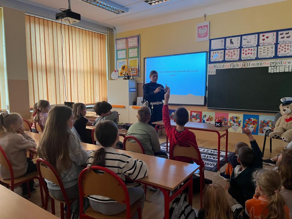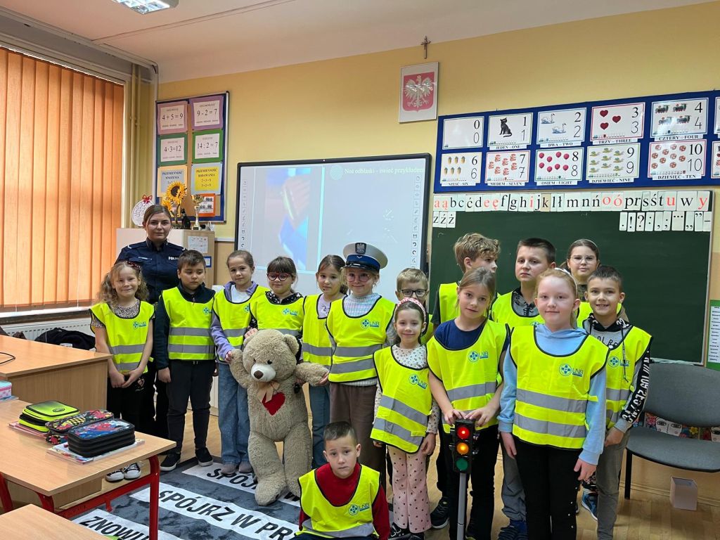 27 października 2025 roku policjanci z ruchu drogowego odwiedzili uczniów Szkoły Podstawowej w Kiernozi. Policjanci w klasach I-II przeprowadzili lekcję o bezpieczeństwie na drodze. Mundurowi uczyli najmłodszych właściwych zachowań na drodze, przypominali o przestrzeganiu znaków i przepisów drogowych. Apelowali do dzieci aby na drodze zawsze pamiętali o swoim bezpieczeństwie, rozwaga i ostrożność to podstawa. Policjanci wykorzystali materiały edukacyjne w postaci mat, sygnalizatorów świetlnych, aby dzieci czuły się jak na drodze i ćwiczyły właściwe zachowania. Ważnym elementem tego edukacyjnego spotkania było omówienie podstawowych zasad udzielania pierwszej pomocy przedmedycznej i właściwej reakcji na widok osoby poszkodowanej. Uczniowie przypominali numery alarmowe, aby wiedzieć gdzie prosić o pomoc, kiedy stanie się coś złego. Uczniowie dowiedzieli się jak ważne są elementy odblaskowe noszone po zmroku, dzięki którym pieszy czy rowerzysta jest dużo lepiej widoczny dla pojazdów. Odblaski mogą uratować życie!