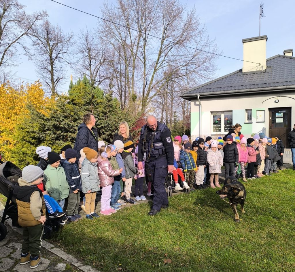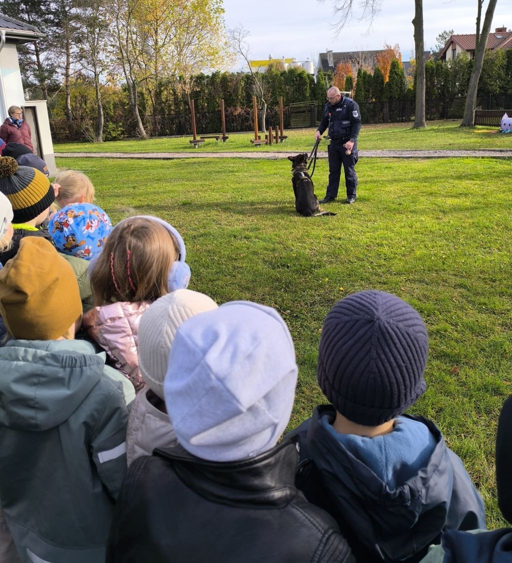 Łowiccy dzielnicowi odwiedzili przedszkolaków w łowickim „Jasiu i Małgosi”. Funkcjonariusze przeprowadzili pogadankę i zapoznali dzieciaków z podstawowymi zasadami bezpieczeństwa na drodze: jak przejść na drugą stronę jezdni, nie wybiegać na jezdnię, chodzić po chodniku, jak najdalej od pojazdów. Policjanci apelowali o rozwagę, wyjaśniali dlaczego należy nosić elementy odblaskowe. Zwrócili również uwagę na bezpieczeństwo w codziennych sytuacjach, zalecali ostrożność w kontaktach z osobami obcymi i kiedy ktoś nieznajomy nas zaczepia. Należy pamiętać o numerach alarmowych. Spotkanie miało również na celu zapoznanie się z osobą policjanta i jego pracą. Dużą atrakcją okazała się obecność przewodnika policyjnego z psem służbowym, który opowiadał o szkoleniu psów w policji. Dzieci chętnie przymierzały policyjny osprzęt oraz radiowóz.